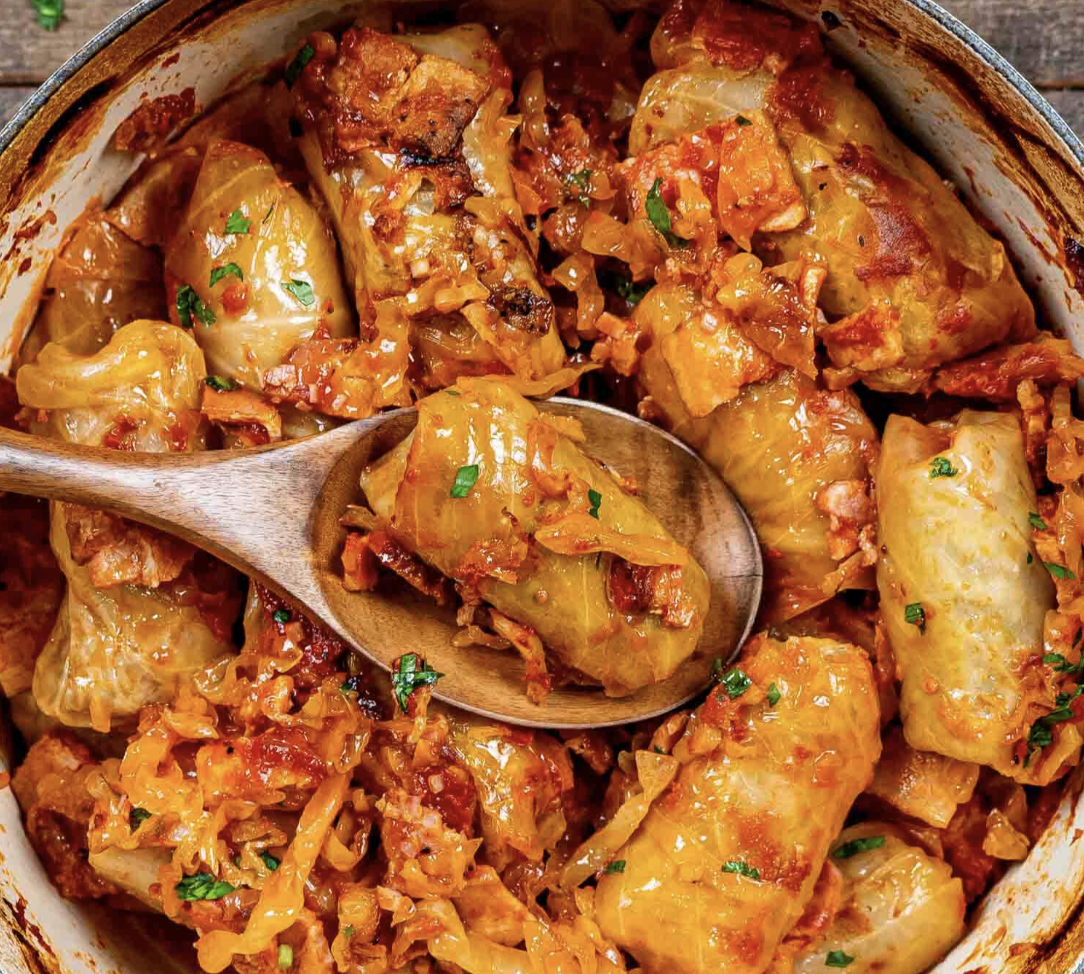 How I use cabbage: my favorite way is honestly just stuffing it with leftovers… literally any leftovers. I cook the leaves and use them like wraps. Leftovers like chicken and rice, salmon and rice, ratatouille, stews, all of them work.